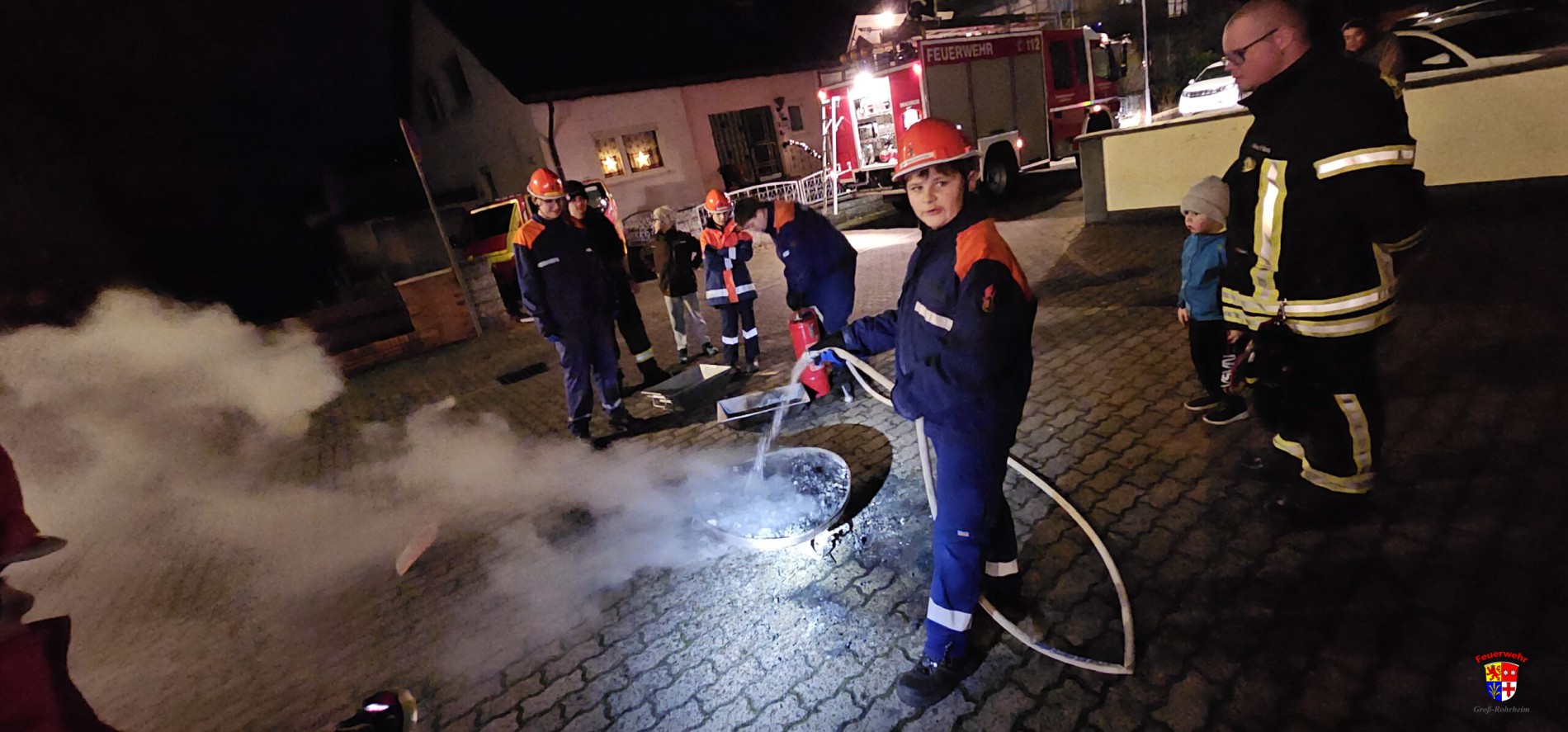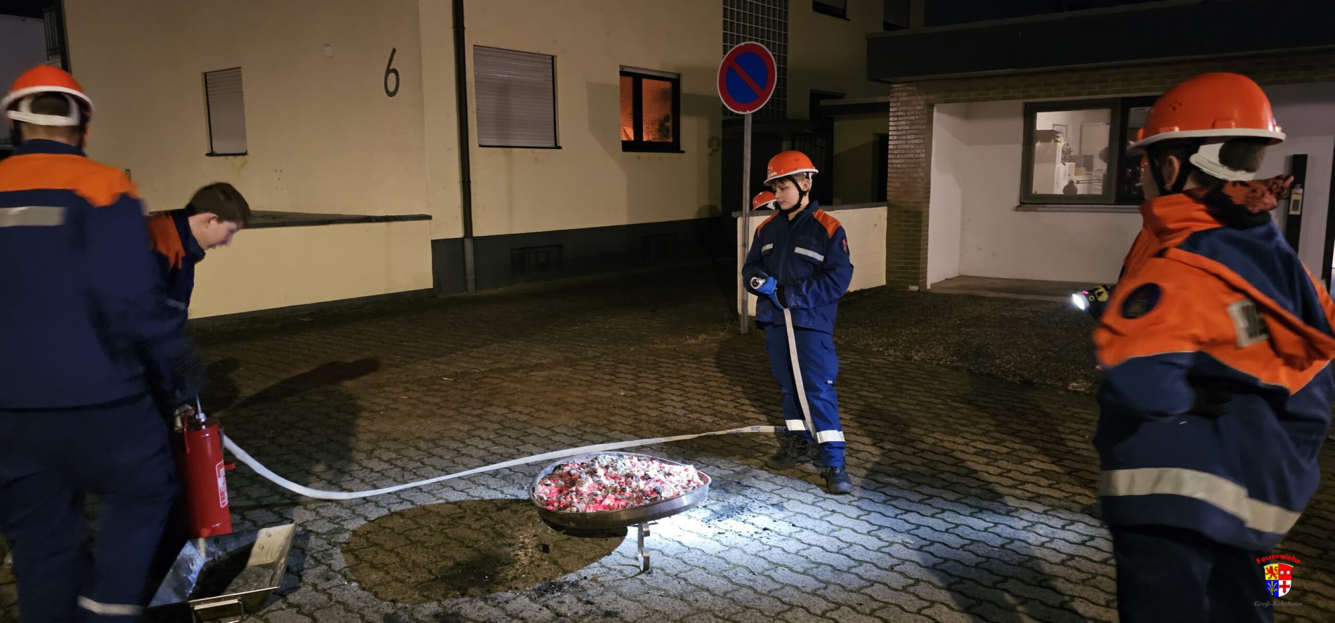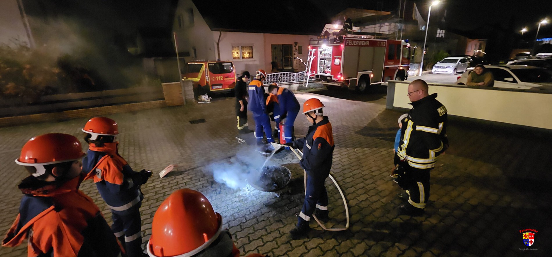 Zu guter Letzt löschten die Jugendlichen die Glut in der Feuerschale mittels der Kübelspritze.