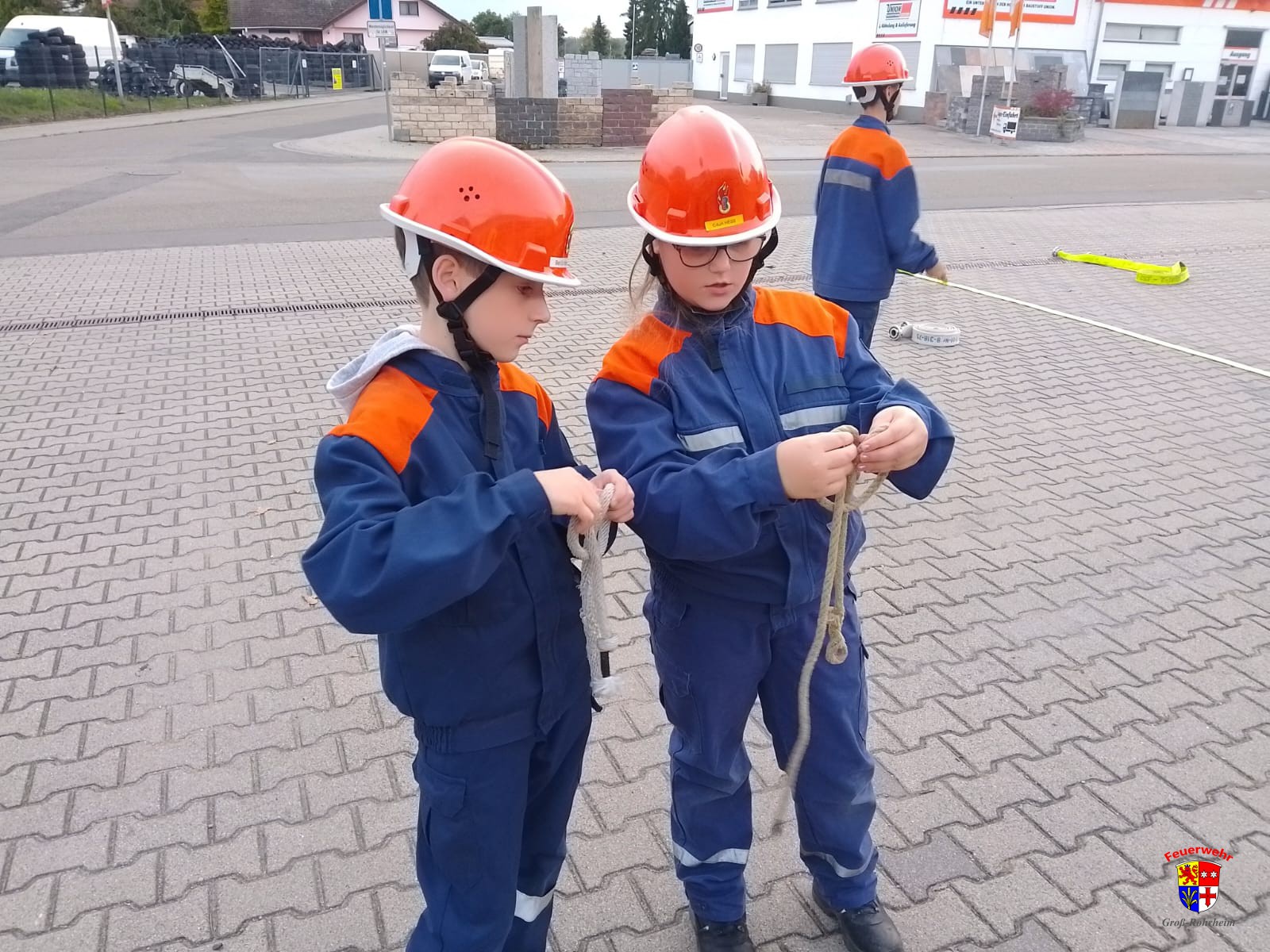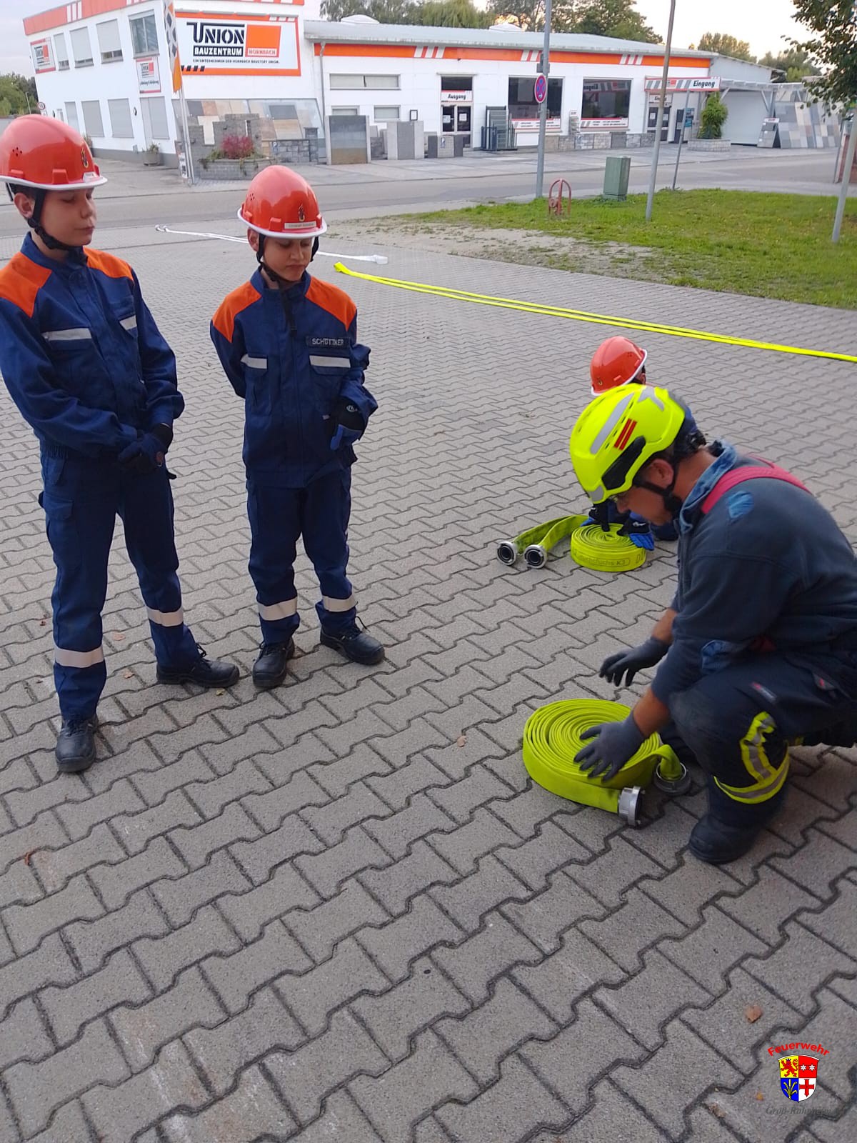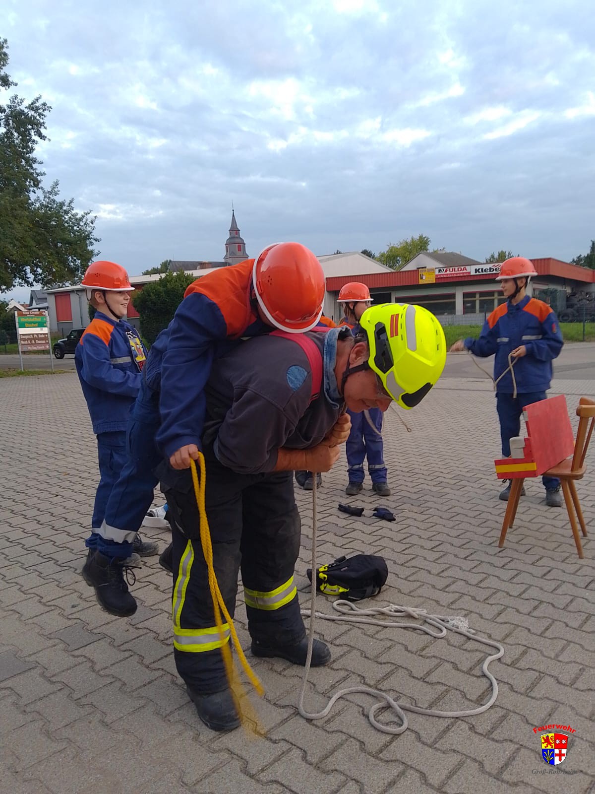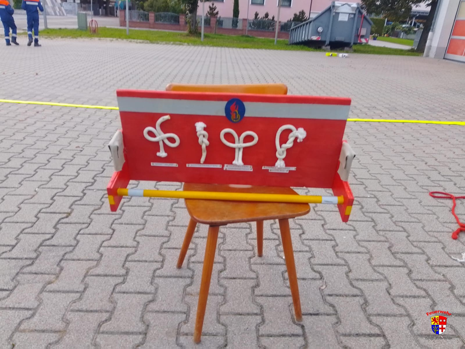 Diesmal haben wir uns für eine Stationsausbildung mit den Themen Notruf, Schlauch rollen/kuppeln und Knotenkunde entschieden.