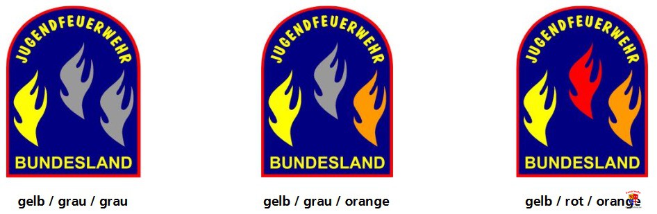 Das Abzeichen zeigt eine gelbe Flamme auf der linken Seite